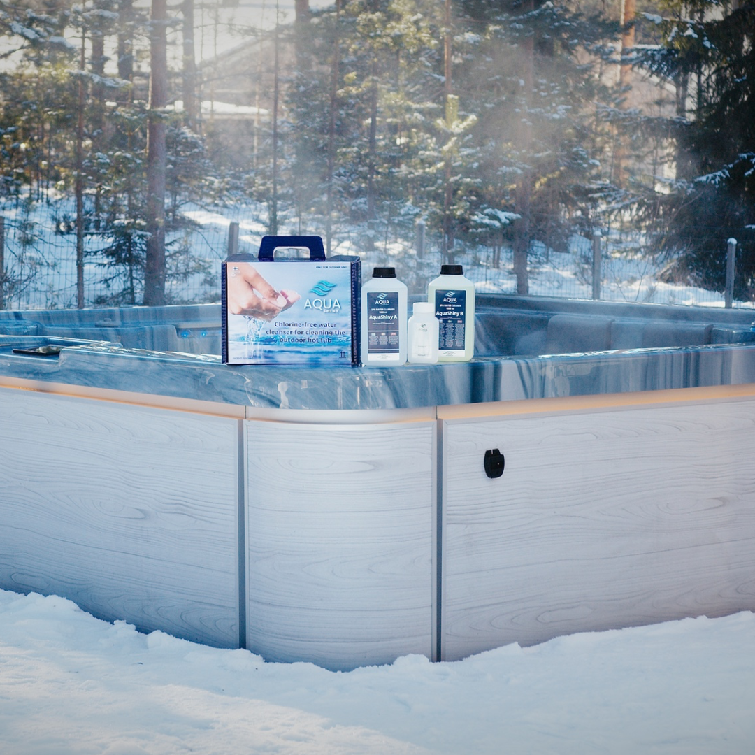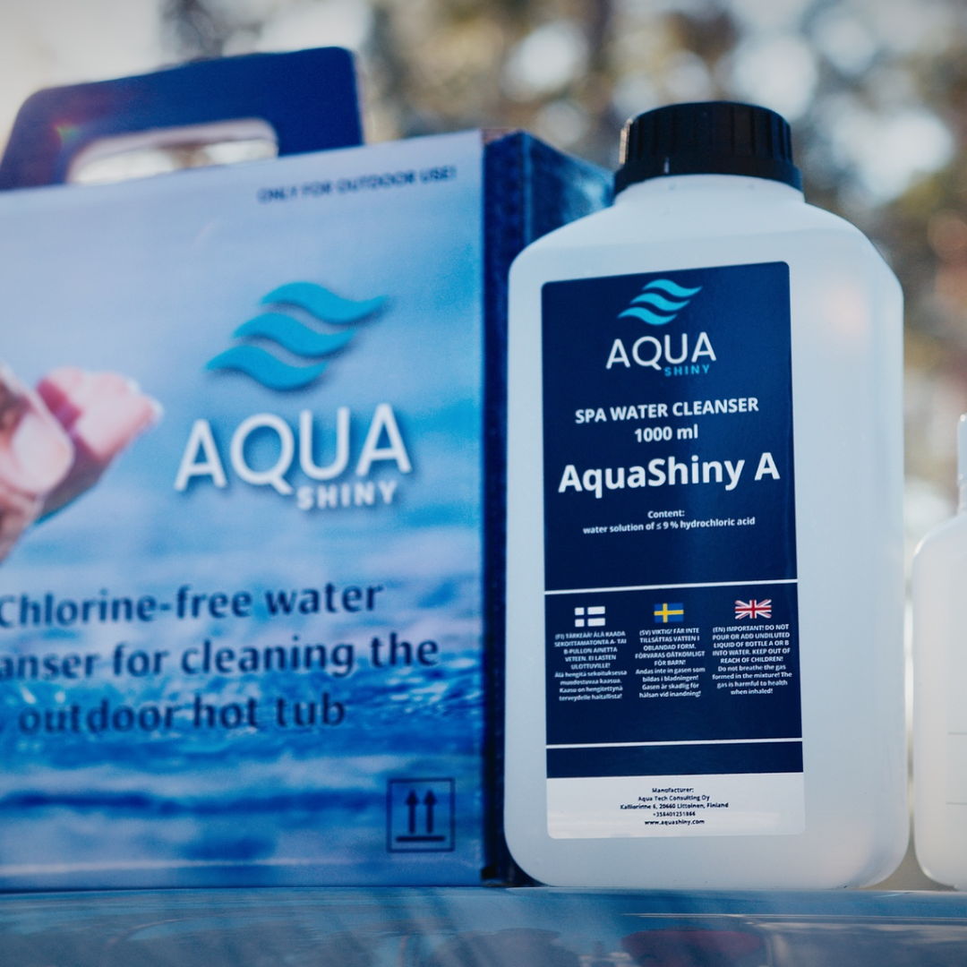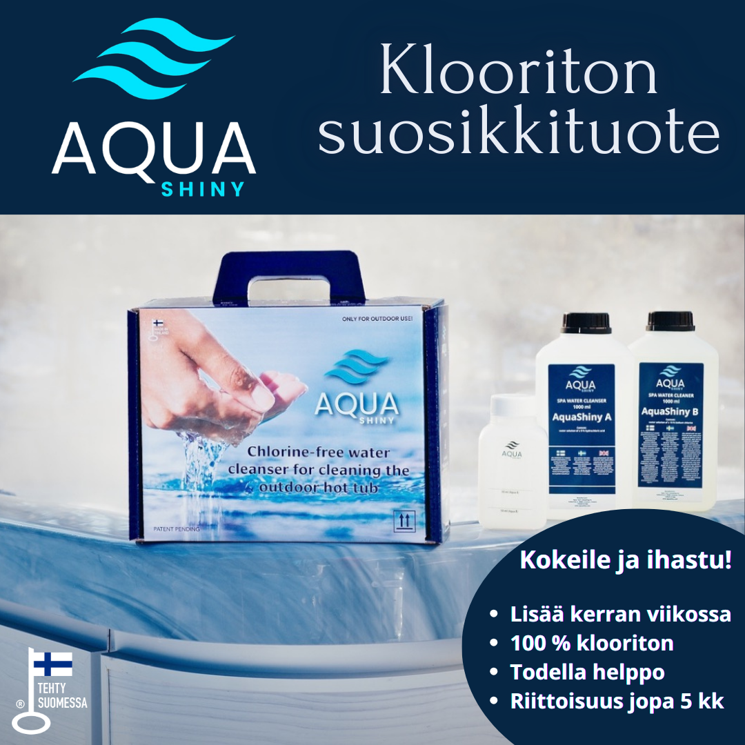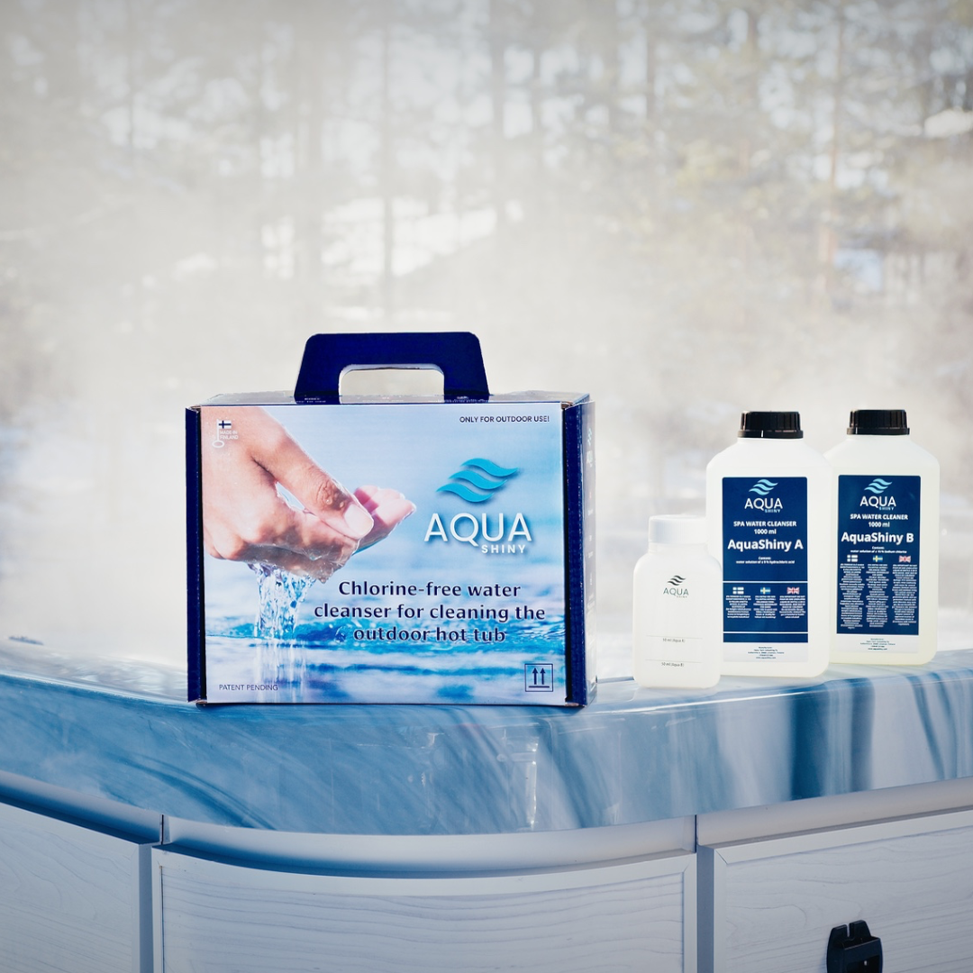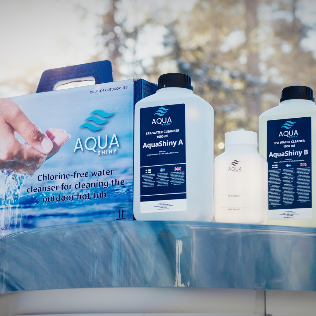 Ota AquaShiny testiin ja anna ulkoporealtaasi vedelle parasta hoitoa ja nauti puhtaudesta ilman haitallisia klooripohjaisia kemikaaleja!