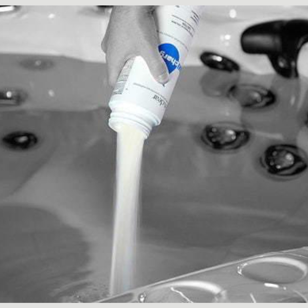 Lisää liuos suodatinlokeroon tai suoraan altaaseen.