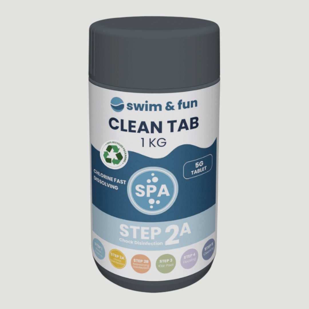 Clean Tab 5g on nopeasti liukeneva klooritabletti, joka soveltuu uima-altaiden, hieronta-altaiden, porealtaiden ja paljujen veden puhdistukseen.