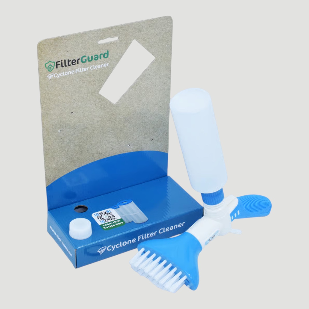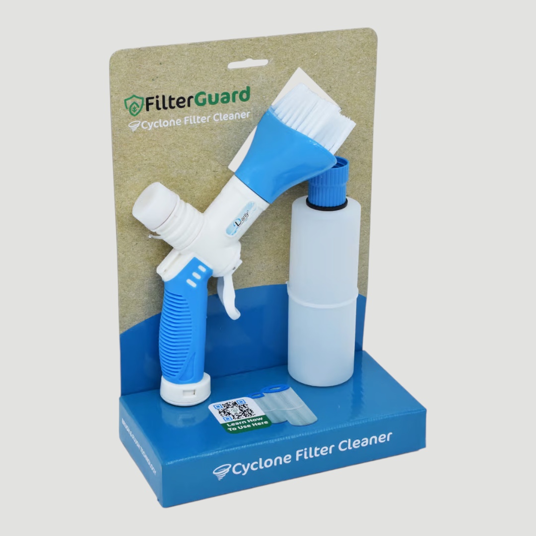Helpota suodattimen puhdistusta Darllyn valmistamalla suodatinkammalla. Kampaan liitetään puutarhaletku ja tehdään suodattimelle tehokas syväpuhdistus. Kamman harjakset avaavat suodattimen välit ja suihkuttaa vettä sekä suodattimen pintaan että väleihin. Suodatinpesurin yhteydessä tulee myös säiliö, johon voit lisätä suodattimen pesuainetta.
