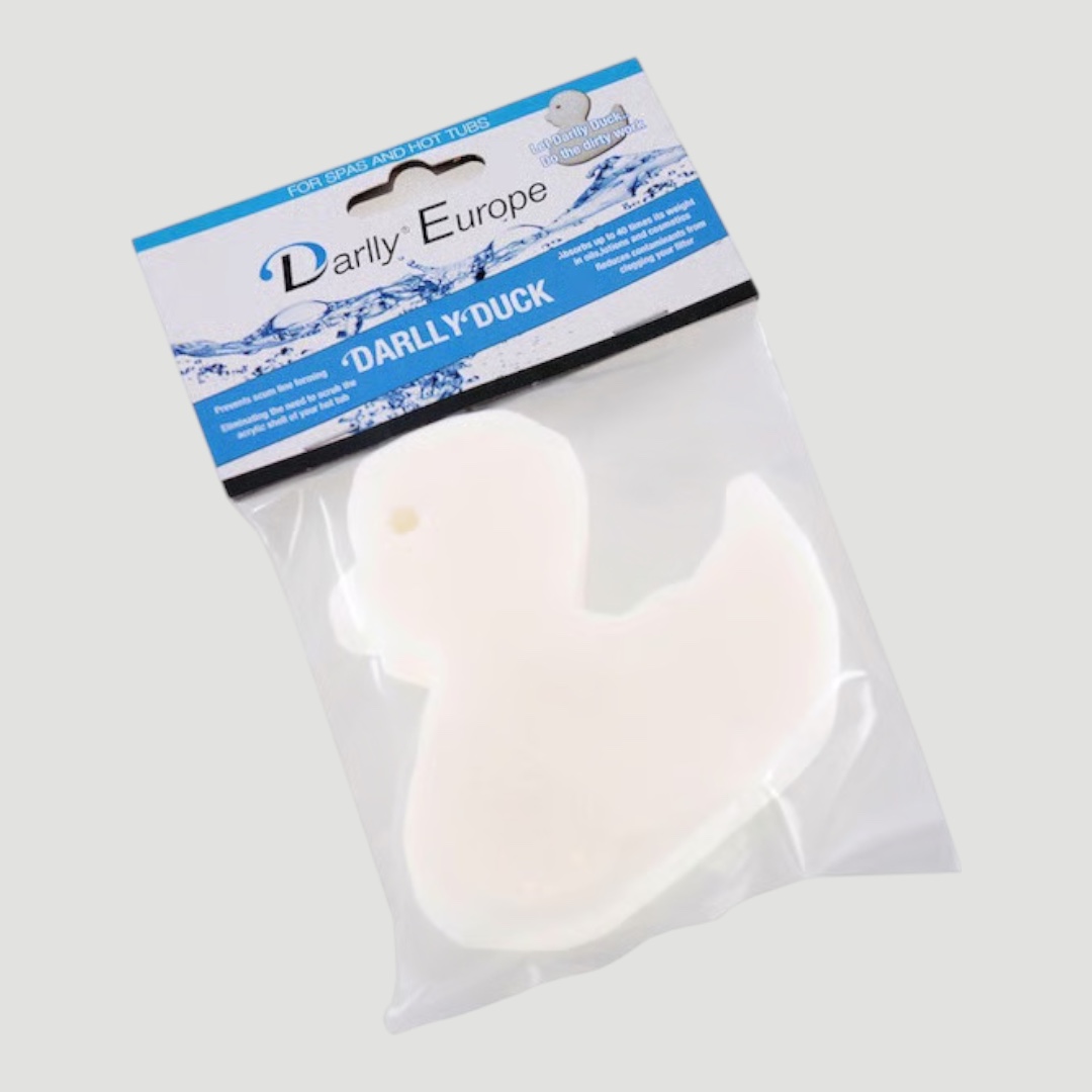 Darlly Duck on käytännöllinen ja sympaattinen rasvankerääjä ulkoporealtaaseen. Se kelluu veden pinnalla ja imee itseensä rasvaa, öljyä, aurinkovoiteita ja kosmetiikkajäämiä, jotka muuten jäisivät veden pintaan tai rasittaisivat suodatinta.